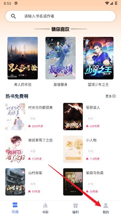 方法二:点击底部或侧边栏的“书架”或“书城”等选项,然后找到并点击搜索图标(如放大镜图标)。