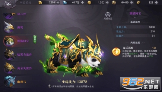 在坐骑统中玩家可以外形各异的神兽作为自己的坐骑,每种坐骑不但会提供基础属性加成还会有不同的特殊技能,针对自身特性装备不同的坐骑技能也是非常关键的。