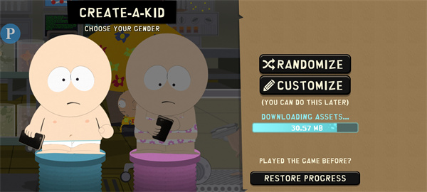 1、下载进入南方公园手机毁灭者手游,首先我们先来创建一个角色;