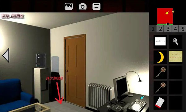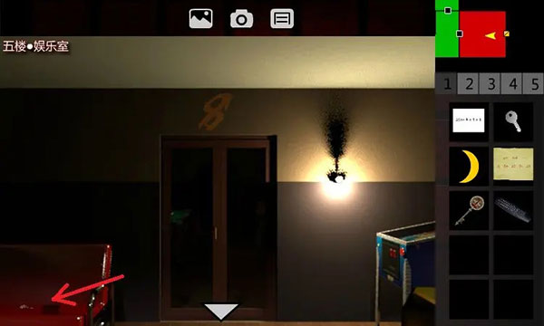 5、回到1F•电梯间。点击5F、出电梯、进入5F•西侧廊。左转3次,解开红色1号门,进入5F•生命之歌。触发剧情。后退,取走【遥控器】(在桌子上),出门、进入5F•西侧廊。点击密码器,要输入5位密码。联想到retaw,门锁解除,进入5F•娱乐室。取走【3号钥匙】,触发剧情。丹回到5F•西侧廊。