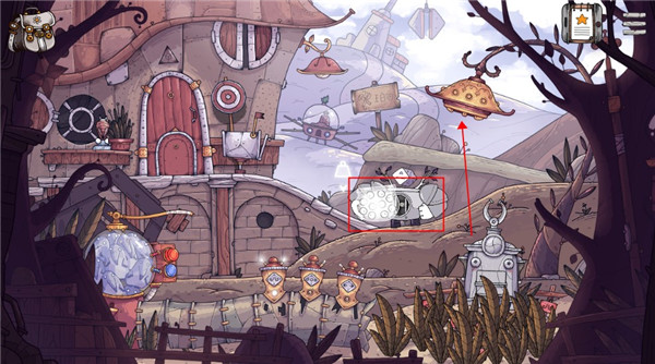 7、往右走,拖动打开所有包围直升机的巨大花瓣。然后调整投石机关,使石头投射在3个藏有黄色虫子的地方。最后切换角色为小女孩,进入直升机,前往下一个星球