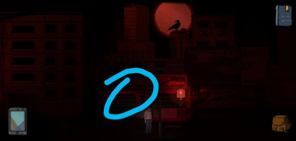 进入主角的噩梦场景,右上角有一盏蓝色的灯,旁边有个鸟巢。