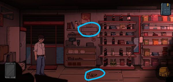 回到居民楼下,根据提示登上三楼,敲303,掉下来密码箱,提示薯片可乐。超市货架上的薯片可乐组成“RE”的图案,输入密码,获得盐。