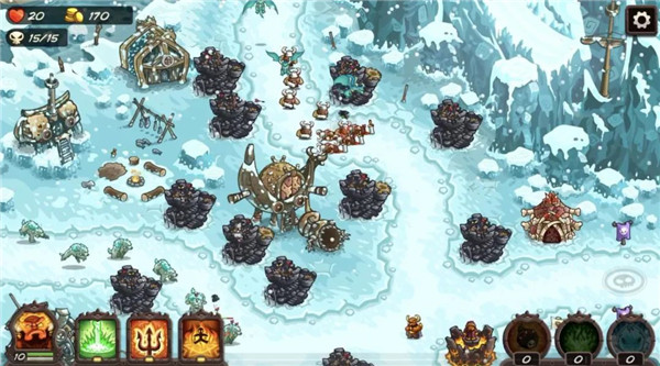 1、游戏的核心玩法还是以《王国保卫战》为主的核心竞争,建造、升级旧塔、调遣、释放技能、布阵,一切还是这么熟悉。