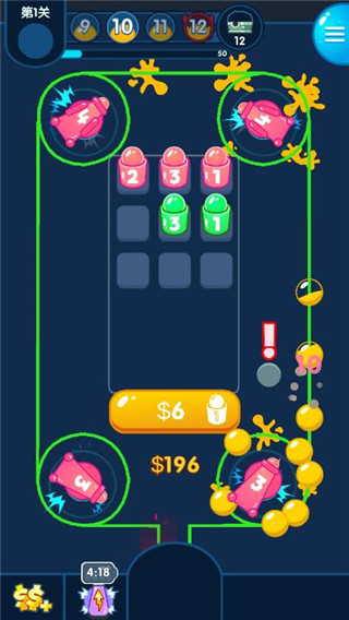 收集升级不同的喷涂道具,击败源源不断入侵的泡泡怪兽,颜料飞溅,快速融合,尽可能地尝试升级,完成任务。