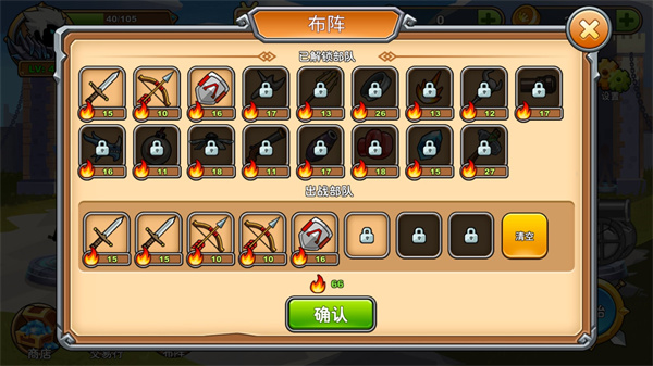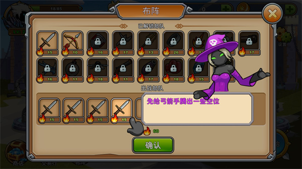 进入“布阵”界面,先给弓箭手腾出一些空位,接着再进入普通关卡试试效果。