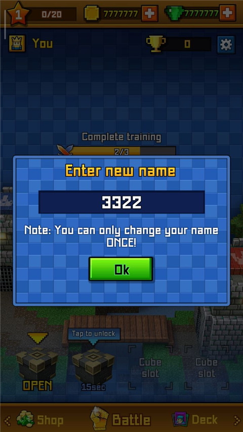 1、安装并打开本站提供的像素皇室战争最新版2023,首先开局一定要给自己取个好听的名字哟