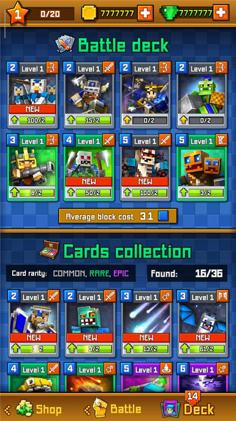 7、赢得战斗获得大量不同的宝箱,收集新的卡牌并且升级它们;让你的阵营中拥有大量不可思议的士兵和战争机器