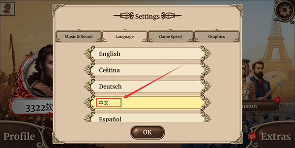 3、然后在下方选择中文,最后点击OK即可成功设置。