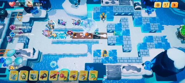 1、开局8到10秒后,冰雪机器人先放在右边,搞个弓箭塔,然后路中间放弹簧,升级箭塔。