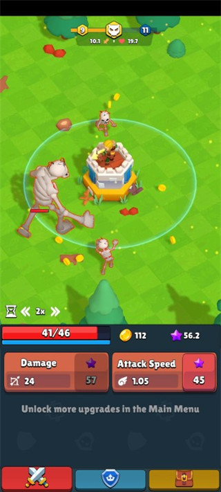 2、在这个魔法世界中,你需要不断的击败邪恶的怪物,并通过升级弓箭手的攻击伤害,击败更加强大的怪物;