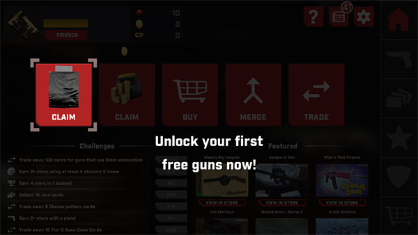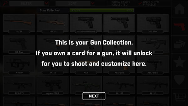 1、从本站下载真实枪械2官方最新版,进入游戏开始有新手教程,使用卡片即可解锁目标枪支;