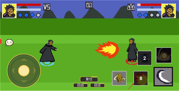 其次在游戏的对战环节,作为一款《火影忍者》的衍生格斗游戏,《像素火影》的一些招式还原度还是有保障的,从基础的配招以外到不同人物之间的招牌技能都有复刻出来,并且游戏的操作界面可以说是简单至极,非常好辨认,比如攻击键、各种技能按键地展示了出来,甚至为了和人物技能所对应,在每个人物的技能键上都有专门的图标,如果是来了解《火影忍者》的玩家估计很快就能够熟悉上手了,就是布局看着还是有些混乱,因为不是像MOBA游戏那样采用滚轴键盘的布局,而是按照一个接一个的放置在画面边缘,所以如果是手机屏幕比较小的玩家可能会看着有些不舒服,不知道后续内容会不会进行优化下。