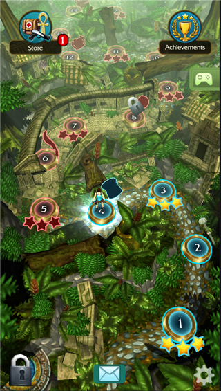 2、同样是上下左右划屏控制着劳拉在遗迹中一路狂奔,躲避陷阱并沿途收集考古道具。