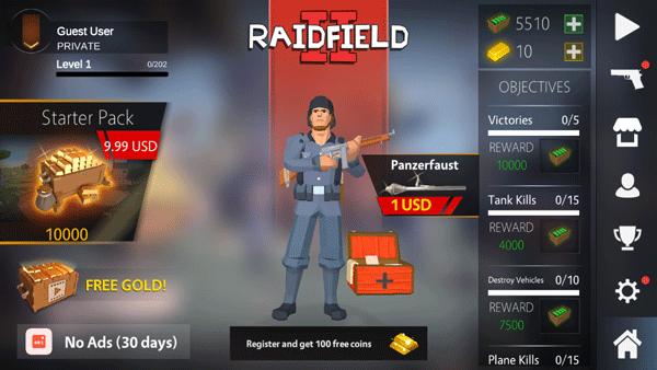 突袭战场Raidfield2是一款新颖有趣的动作战争类手游,该游戏为玩家设置了丰富的场景地图,玩家可以在这里解锁各种坦克武器等战斗装备,同时还有多种交互式战斗体验和垂直式的探索式玩法,玩家可以在这里感受到真实刺激的战斗玩法,体验奴一样的游戏魅力。