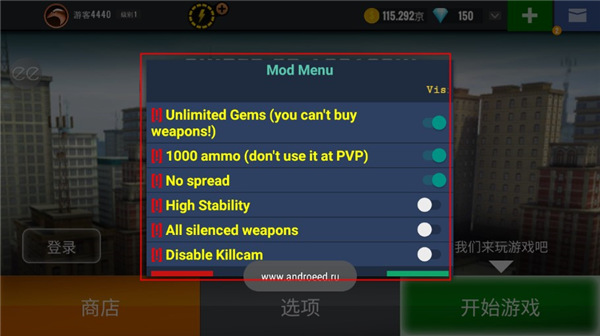 此版本已由网络大神破解完成,不含任何广告,游戏内置菜单功能,大量金币大量钻石(无法用于购买武器)、1000子弹(PVP无法使用)、子弹不会扩散、高稳定性(瞄准时武器不会摆动)、武器静音(不会惊吓到敌人)、禁用重复杀死等多种,需注意的是,为了避免游戏黑屏、闪退、卡顿,建议玩家在飞行模式下运行。感兴趣的玩家不妨下载体验一下试试看吧。