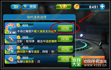 2.再获取一下本场比赛的临时道具,本场临时提升最大速度和加速度。