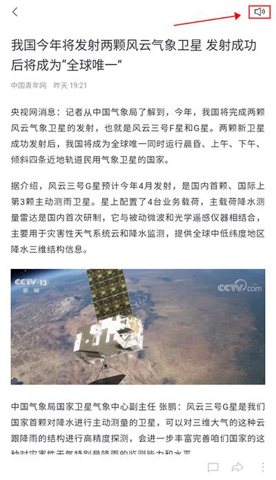 2、点击你要想阅读的文章,点击界面右上角的“小喇叭”图标就可以听新闻啦。