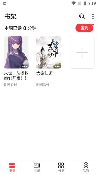 记录阅读时长,也可以将自己喜欢的小说加入书架进行阅读