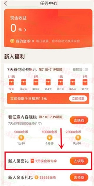 2、点击左上角红包图标进去领取1元新人红包
