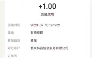 是真的,有柿是一款还不错的靠谱刷视频挣钱软件,它是抖音旗下的产品,刚开始我都不知道是抖音推出的,进软件领取了1元钱,提现的时候显示是北京抖音信息服务有限公司打的款,这才发现有柿是抖音搞的。既然,有柿是大公司抖音搞的,那信誉这块肯定不会有假,而且我们进软件分分钟就能挣1块钱立马提出来,说明软件对新用户还是十分友好的。